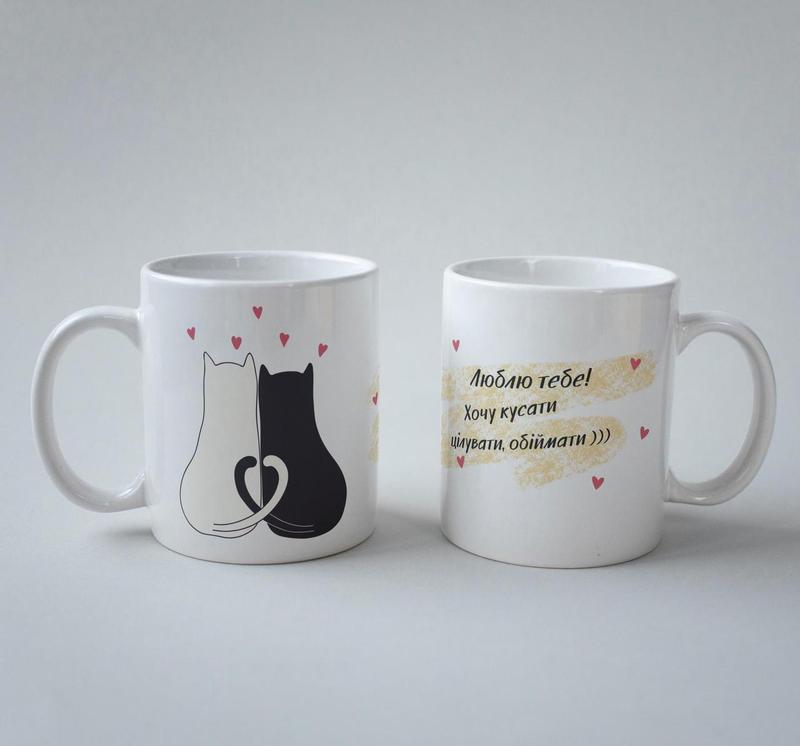Кружка керамічна з принтом "люблю тебе котики" 330 мл біла