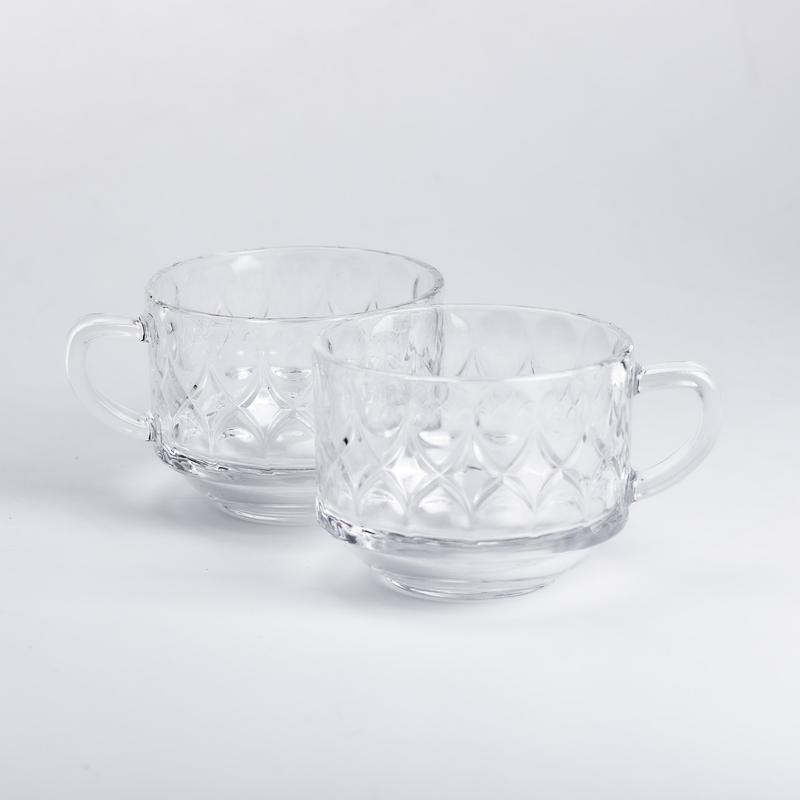 Набір із двох скляних чашок, 450 мл - це стильне і зручне рішення для любителів гарячих напоїв. Прозоре скло підкреслює насичений колір чаю, кави або какао, створюючи естетичну насолоду від кожної порції. Основні характеристики: Матеріал: скло; Об'єм: 450 мл; Діаметр: 10.5 см; Висота: 7.5 см. Призначення: для чаю, кави, гарячих напоїв Догляд: для очищення використовувати м'які мийні засоби, щоб зберегти прозорість і блиск чашки. Уникайте застосування абразивних матеріалів, які можуть пошкодити поверхню. Чашки виготовлені з міцного, термостійкого скла, стійкого до перепадів температур. Вони зручно лежать у руці, забезпечуючи комфортне використання. Гладка поверхня легко очищається - для догляду рекомендується м'який мийний засіб, без абразивів, щоб зберегти прозорість і блиск. Цей набір стане чудовим доповненням до вашого посуду, поєднуючи елегантність, практичність і довговічність.