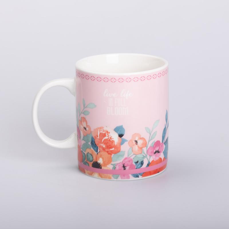 Кружка керамічна з квітковим принтом 400 (мл) для чаю та кави рожева rx-n240139p