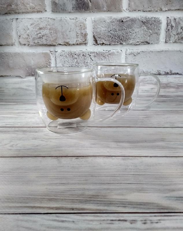 Набор чашек с подвижными стенками vittora animals боросиликатное стекло 2 шт 250 мл прозра...