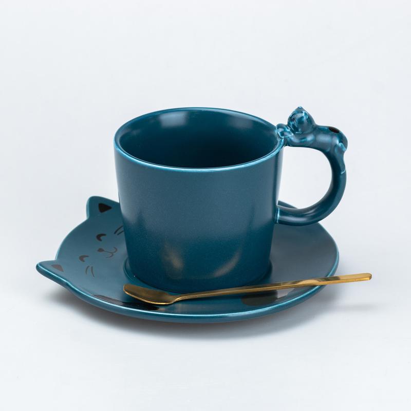 Чашка с блюдцем и ложкой керамическая 250 мл Котик. Эта красивая керамическая чашка в виде Котика с блюдцем и ложкой однозначно станет прекрасным подарком как для взрослого, так и для ребенка! Она неприхотлива в эксплуатации, отлично сохраняет тепло и подойдет для горячих и холодных напитков. Основные характеристики чашки Объем 250 мл; Высота 8 см; Диаметр 8.5 см. Основные преимущества чашки Сохранение тепла: керамика прекрасно сохраняет тепло напитка, позволяя вам наслаждаться чаем или кофе дольше. Экологичность: керамика – это натуральный и безопасный материал, не выделяющий вредных веществ. Универсальность: керамические чашки подходят для горячих и холодных напитков. Практичность: керамические чашки легко моются и не впитывают запахи. Долговечность: керамические чашки при правильном уходе прослужат вам долгие годы.