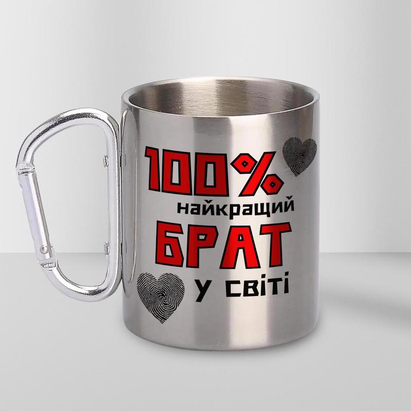 Кружка металева з карабіном "100% найкращий брат" 300 мл срібляста |швидка доставка|