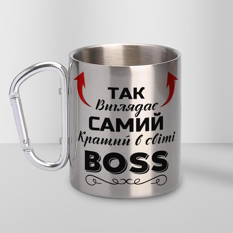 Кружка металева з карабіном "так виглядає самий кращий boss" 300 мл срібляста |швидка до...