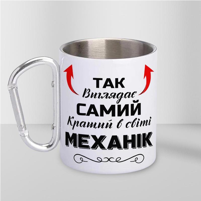 Кружка металева з карабіном "так виглядає самий кращий механік" 300 мл біла |швидка дост...