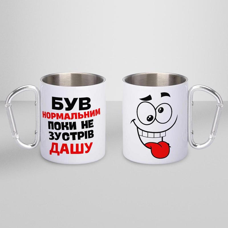 Кружка металева з карабіном "був нормальним поки не зустрів дашу" 300 мл біла |швидка дост...