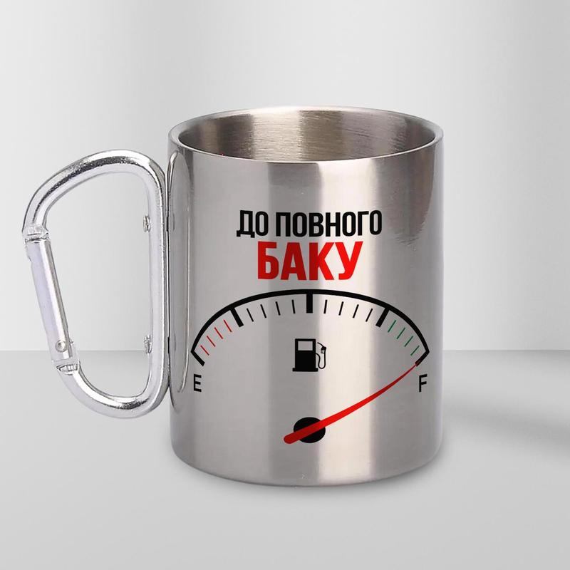 Кружка металева з карабіном "до повного баку" 300 мл срібляста |швидка доставка|