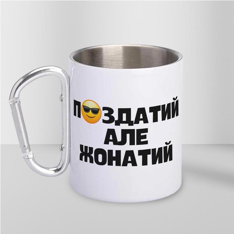 Кружка металева з карабіном "п#здатий" 300 мл біла |швидка доставка|