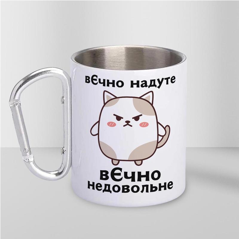 Кружка металева з карабіном "вєчно недовольне" 300 мл біла |швидка доставка|