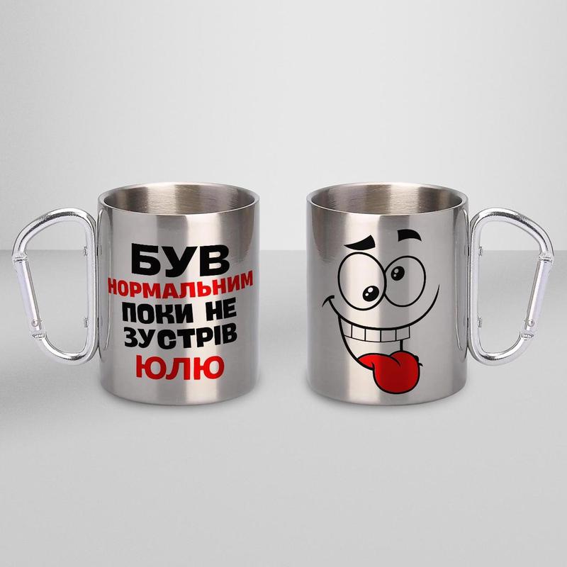 Кружка металева з карабіном "був нормальним поки не зустрів юлю" 300 мл срібляста |швидка...