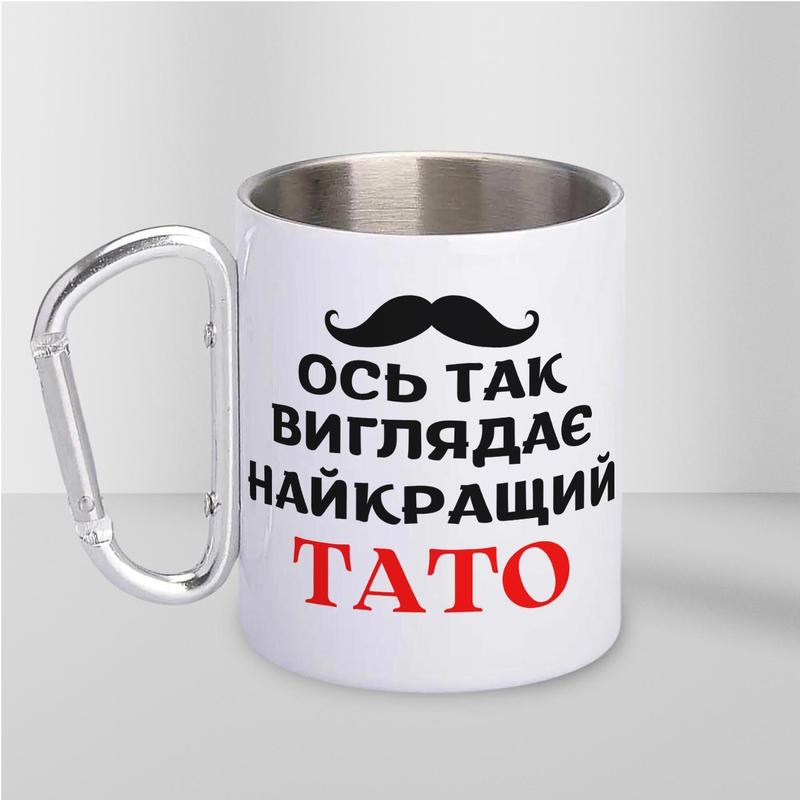 Кружка металева з карабіном "ось так виглядає найкращий тато" 300 мл біла |швидка достав...