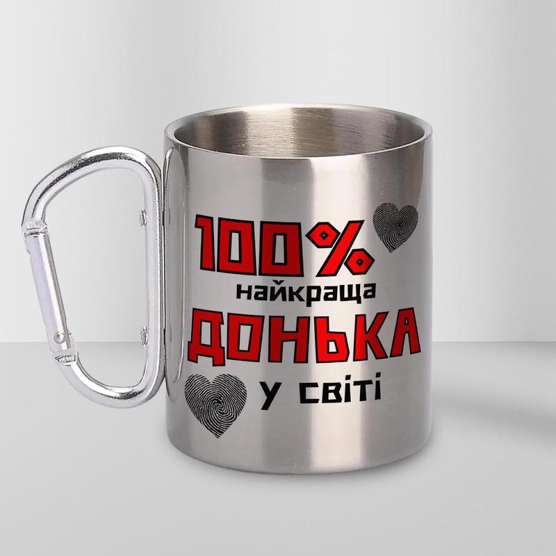 Кружка металева з карабіном "100% найкраща донька" 300 мл срібляста |швидка доставка|