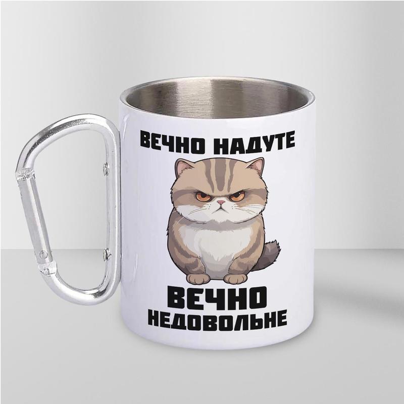 Кружка металева з карабіном "вєчно недовольне" 300 мл біла |швидка доставка|