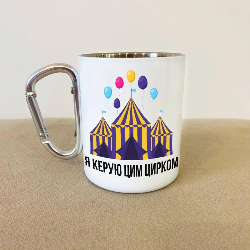 Кружка металева з карабіном "я керую цим цирком" 300 мл біла |швидка доставка|