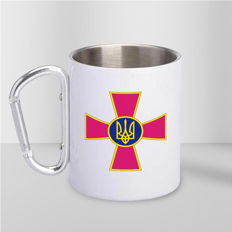 Кружка металева з карабіном "зсу" 300 мл біла |швидка доставка|