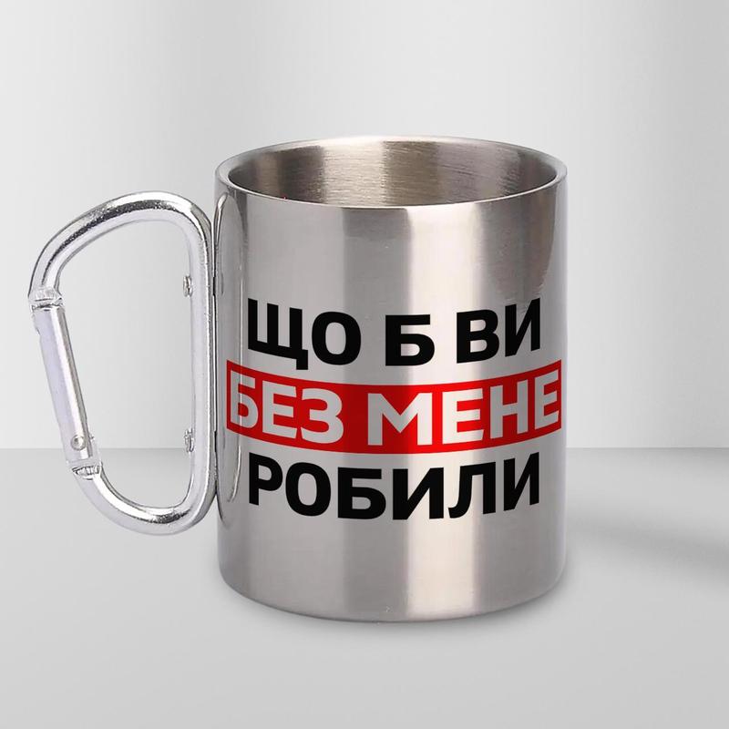 Кружка металева з карабіном "що б ви без мене робили" 300 мл срібляста |швидка доставка|