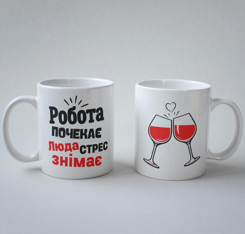 Кружка з принтом "люда стрес знімає" 330 мл біла |швидка доставка|