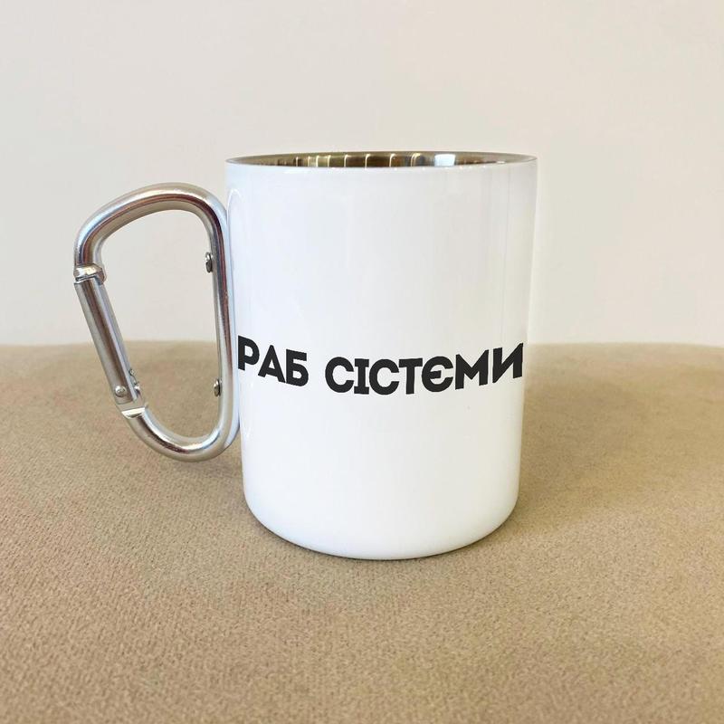 Кружка металева з карабіном "раб сістєми" 300 мл біла |швидка доставка|