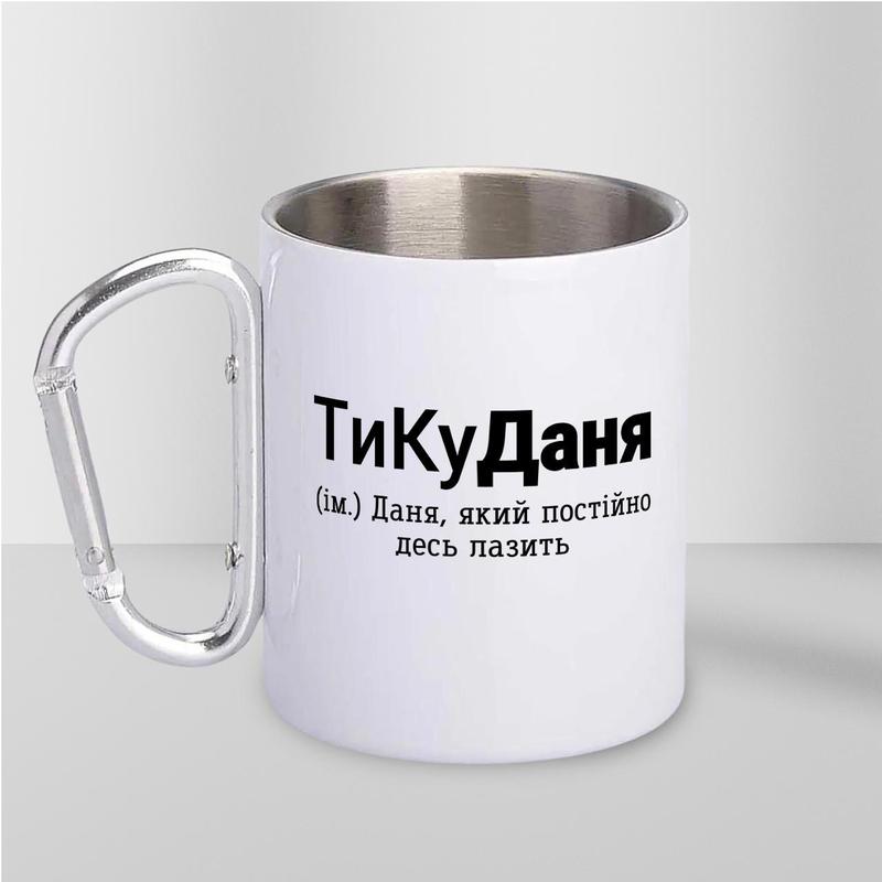 Кружка металева з карабіном "тикуданя" 300 мл біла |швидка доставка|