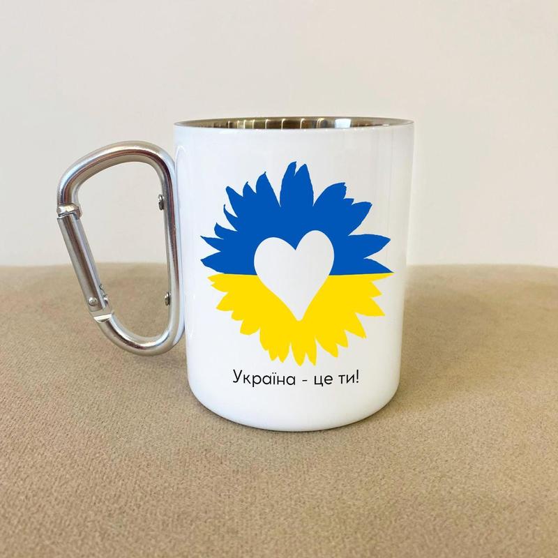 Кружка металева з карабіном "україна - це ти" 300 мл біла |швидка доставка|