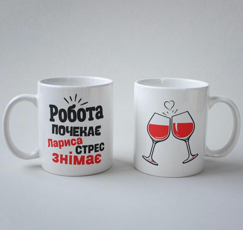 Кружка з принтом "лариса стрес знімає" 330 мл біла |швидка доставка|