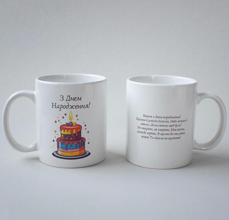 Кружка з принтом "з днем народження" 330 мл біла |швидка доставка|