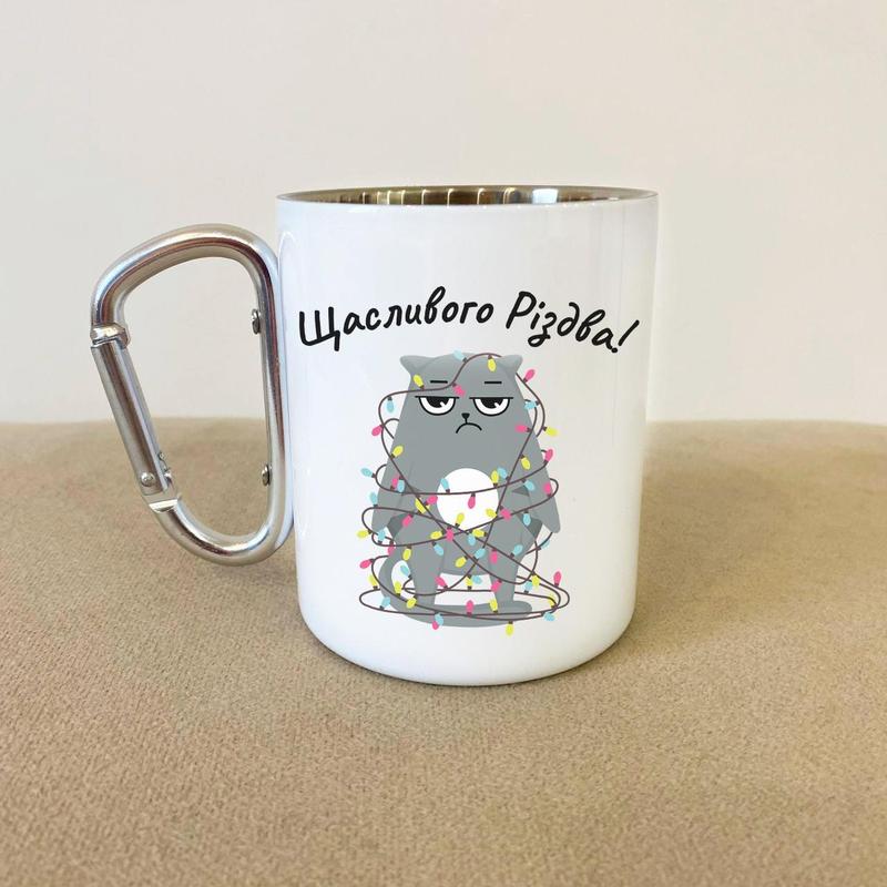 Кружка металева з карабіном "щасливого різдва" 300 мл біла |швидка доставка|
