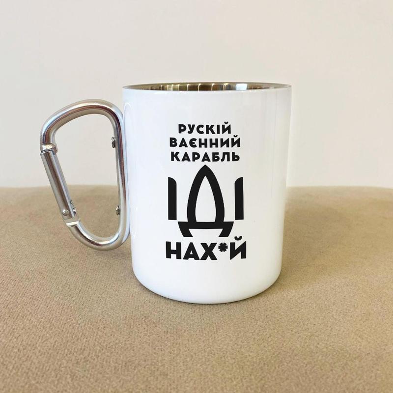 Кружка металева з карабіном "рускій карабль нах" 300 мл біла |швидка доставка|