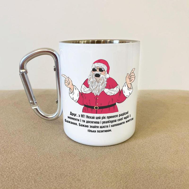 Кружка металева з карабіном "новорічна" 300 мл біла |швидка доставка|