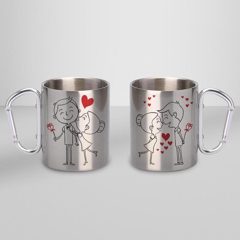 Чашка металева з принтом "кохання" 300 мл з карабіном, срібляста