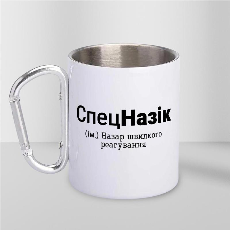 Кружка металева з карабіном "спецназік" 300 мл біла|швидка доставка|