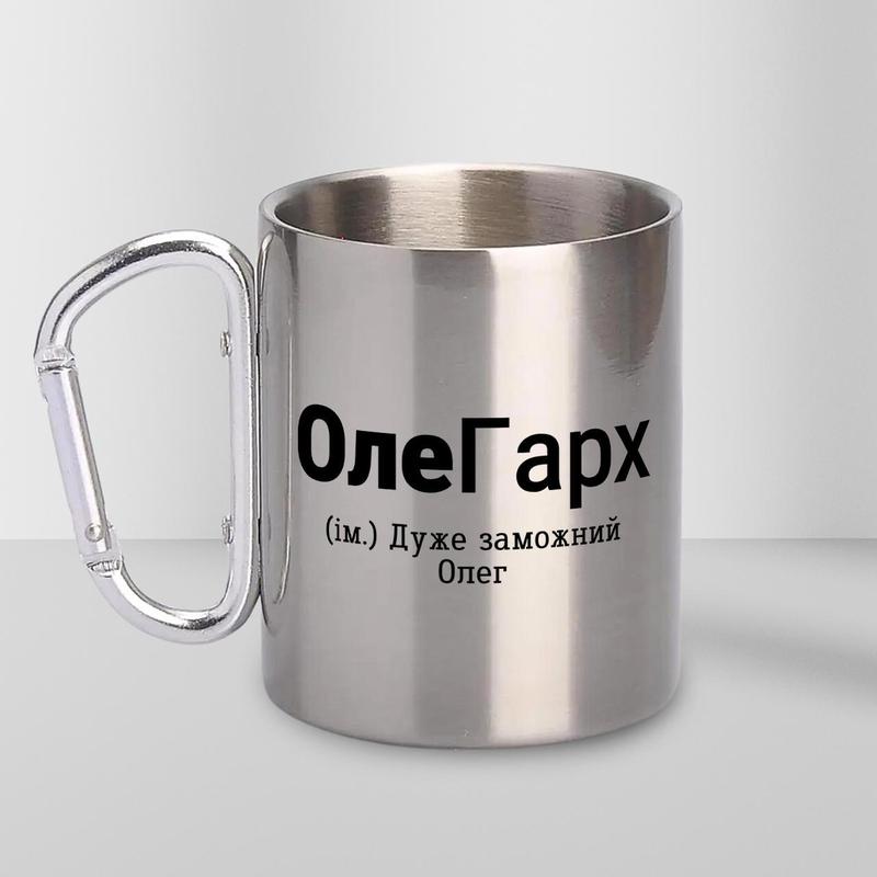 Кружка металева з карабіном "олегарх" 300 мл срібляста |швидка доставка|