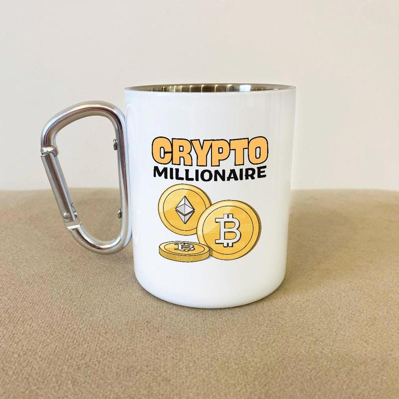Кружка металева з карабіном "crypto millionaire" 300 мл біла |швидка доставка|