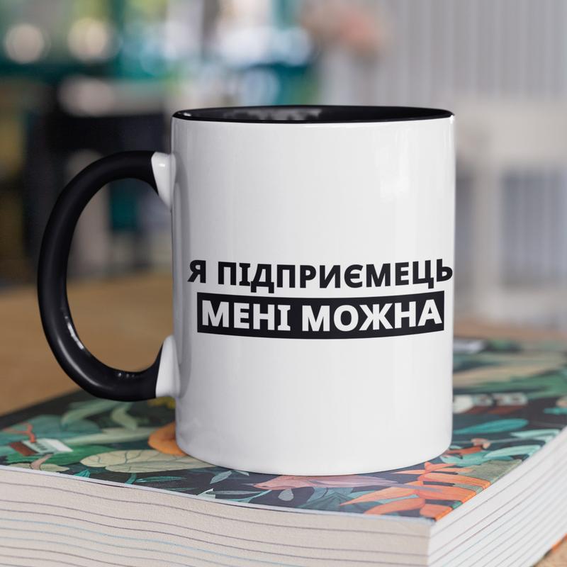 Чашка керамічна з принтом "я підприємець мені можна" 330 мл, біла з чорною ручкою