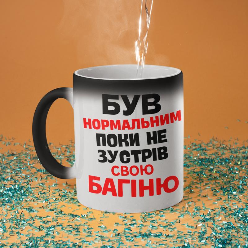 Чашка хамелеон керамічна з принтом "був нормальним поки не зустрів багіню" 330 мл
