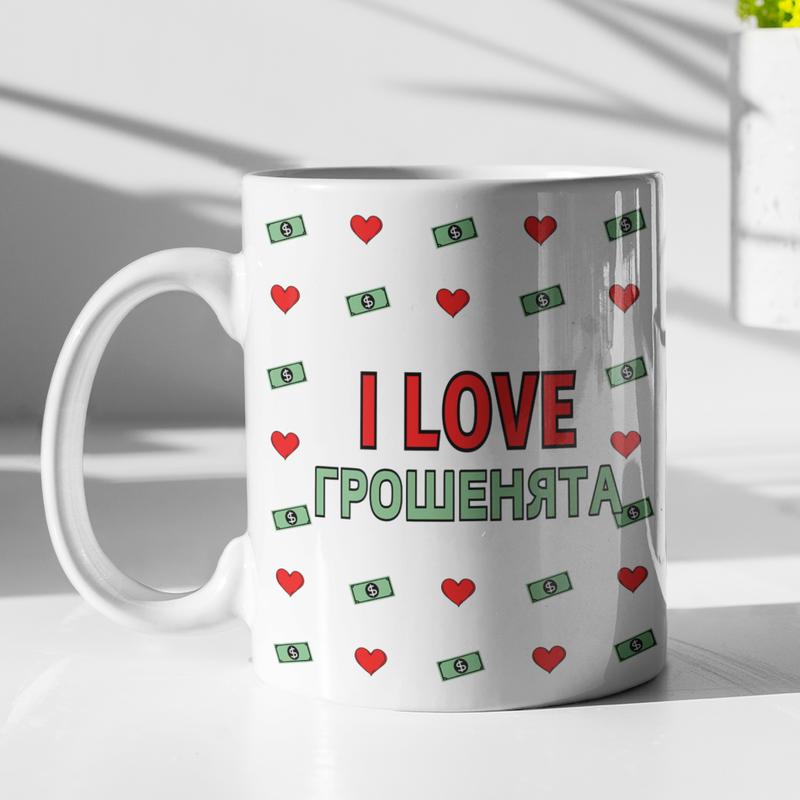 Чашка керамічна з принтом "i love грошенята" 330 мл, біла