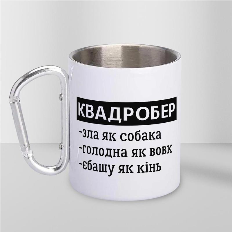 Кружка металева з карабіном "квадробер жінка" 300 мл біла