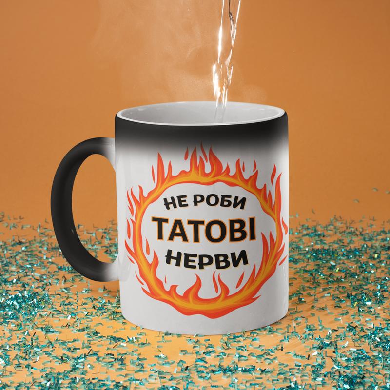 Чашка хамелеон керамічна з принтом "не роби татові нерви" 330 мл