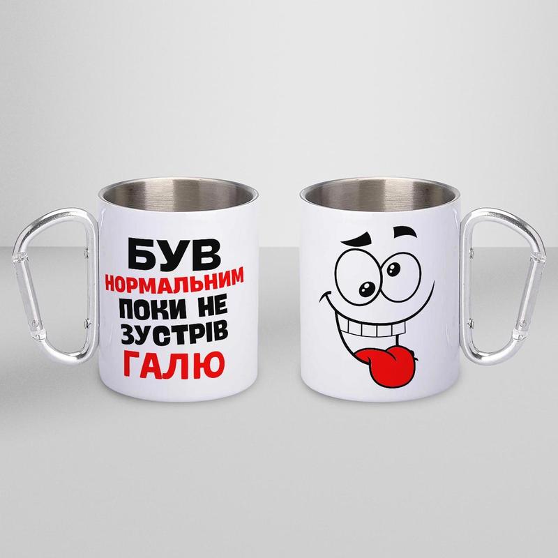Кружка металева з карабіном "був нормальним поки не зустрів галю" 300 мл біла