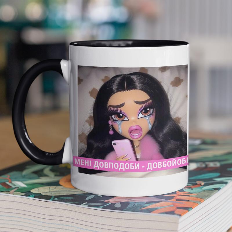 Чашка керамічна з принтом "мені довподоби дов*ойоби" 330 мл, біла з чорною ручкою
