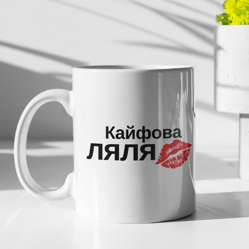 Чашка керамічна з принтом "кайфова ляля" 330 мл, біла