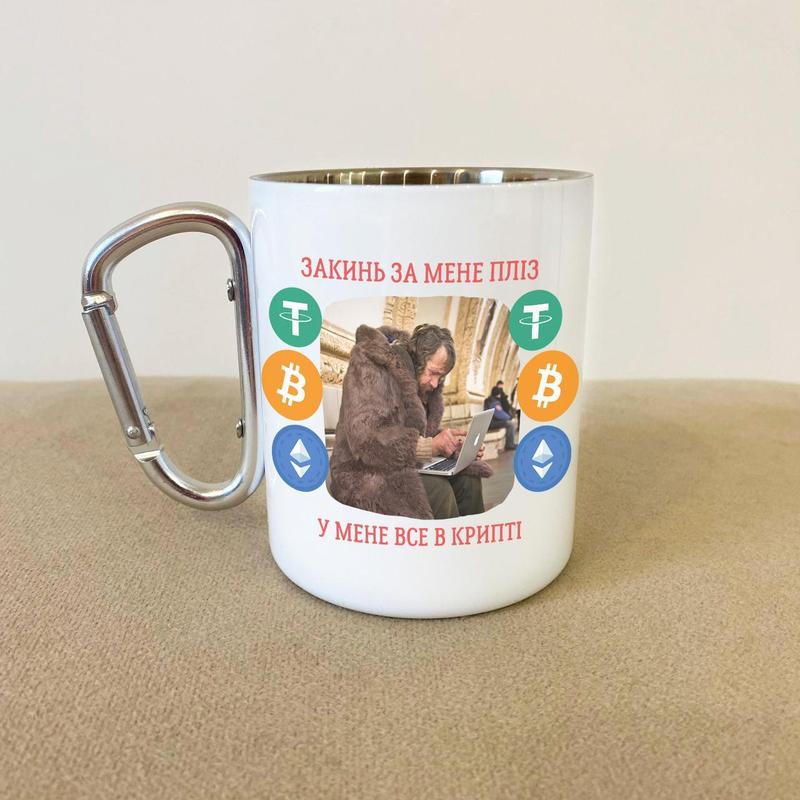 Кружка металева з карабіном "у мене все в крипті" 300 мл біла