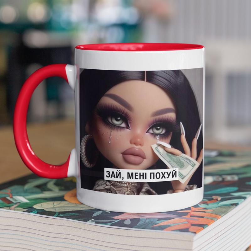 Чашка керамічна з принтом "зай мені пох*й" 330 мл, біла з червоною ручкою
