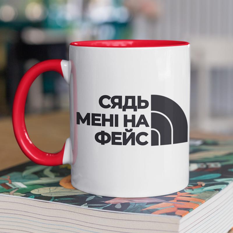 Чашка керамічна з принтом "на фейс" 330 мл, біла з червоною ручкою