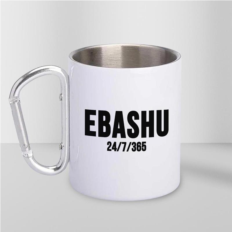 Чашка металева з принтом "ebashu" 300 мл з карабіном, біла
