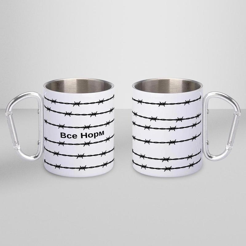 Чашка металева з принтом "все норм" 300 мл з карабіном, біла