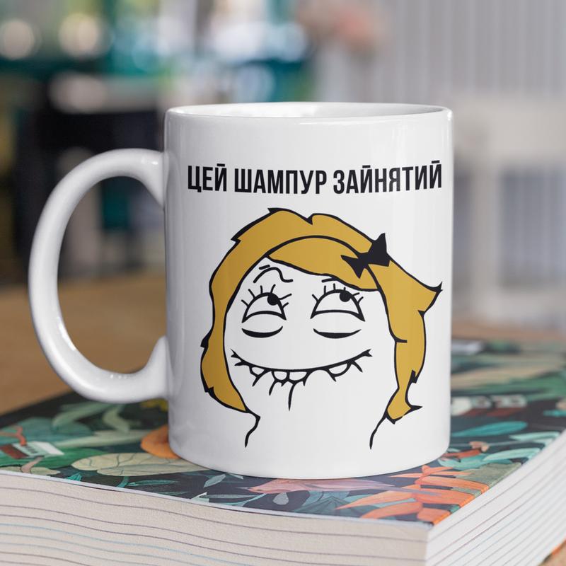 Чашка керамічна з принтом "цей шампур зайнятий" 330 мл, біла