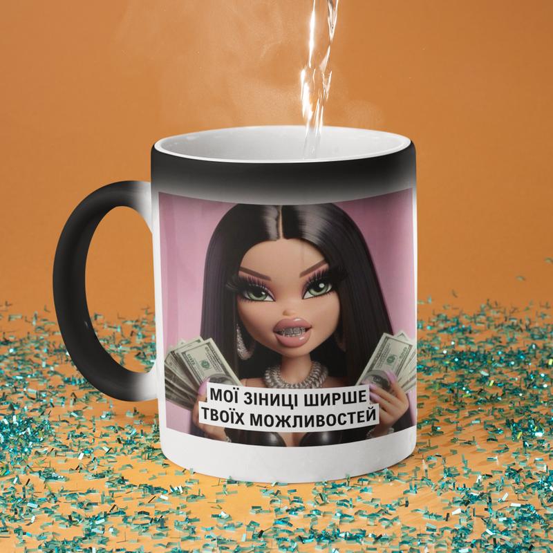Чашка хамелеон керамічна з принтом "мої зіниці ширше твоїх можливостей" 330 мл