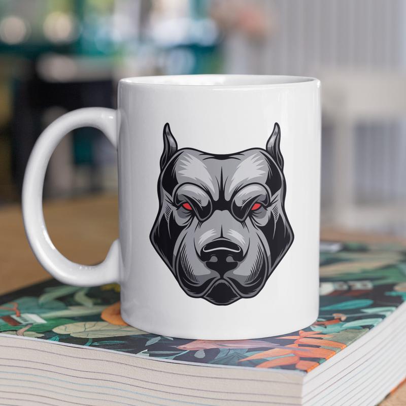 Чашка керамічна з принтом "пітбуль" 330 мл, біла