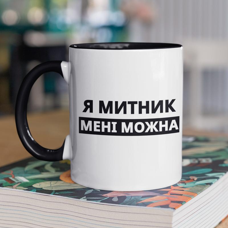 Чашка керамічна з принтом "я митник мені можна" 330 мл, біла з чорною ручкою