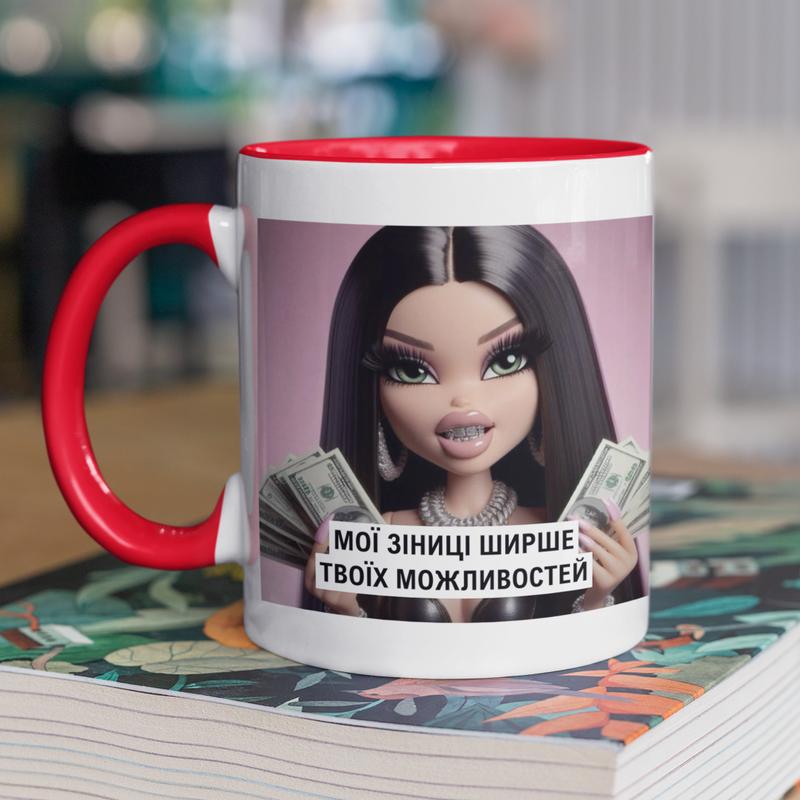 Чашка керамічна з принтом "мої зіниці ширше твоїх можливостей" 330 мл, біла з червоною...